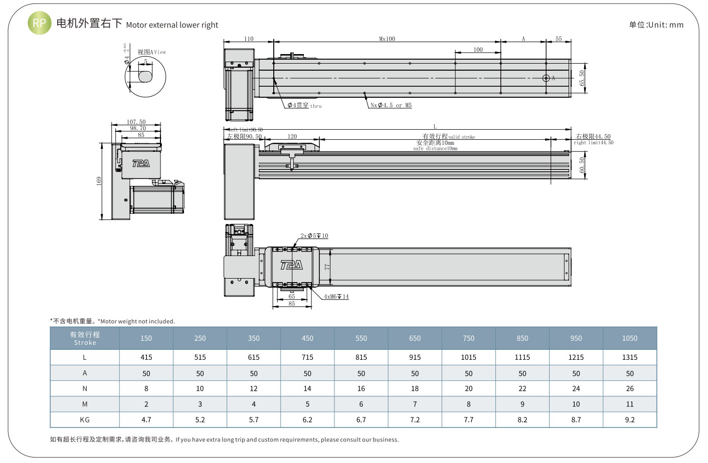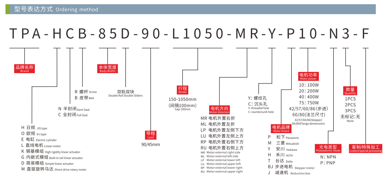 As a classic belt driven linear actuator of TPA ROBOT, compared with the HCR series, the HCB series driven slider with timing belt, which means that the HCB series has a longer stroke and a higher speed. It driven by servo motor, it not only has the high precision of servo motor, but also has the advantages of high speed and high rigidity of sliding stage itself. It is easy to control and can be easily connected with PLC and other systems. The slide actuator is made of integrally extruded aluminum profile, with light weight, small size and strong rigidity. The installation size and stroke can be customized according to the requirements, and the installation can be fixed by bolts. Through the combination of multiple directions, it can be formed into a linear motion systems of various automation equipment, with mechanical grippers, air grippers and other fixtures, it can become an exclusive Cartesian robots or gantry robots.